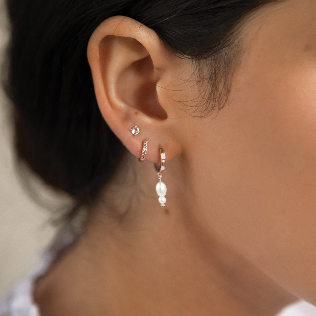 - The earring stud that goes through the ear is 2 micron Rose Gold plated onto Sterling Silver