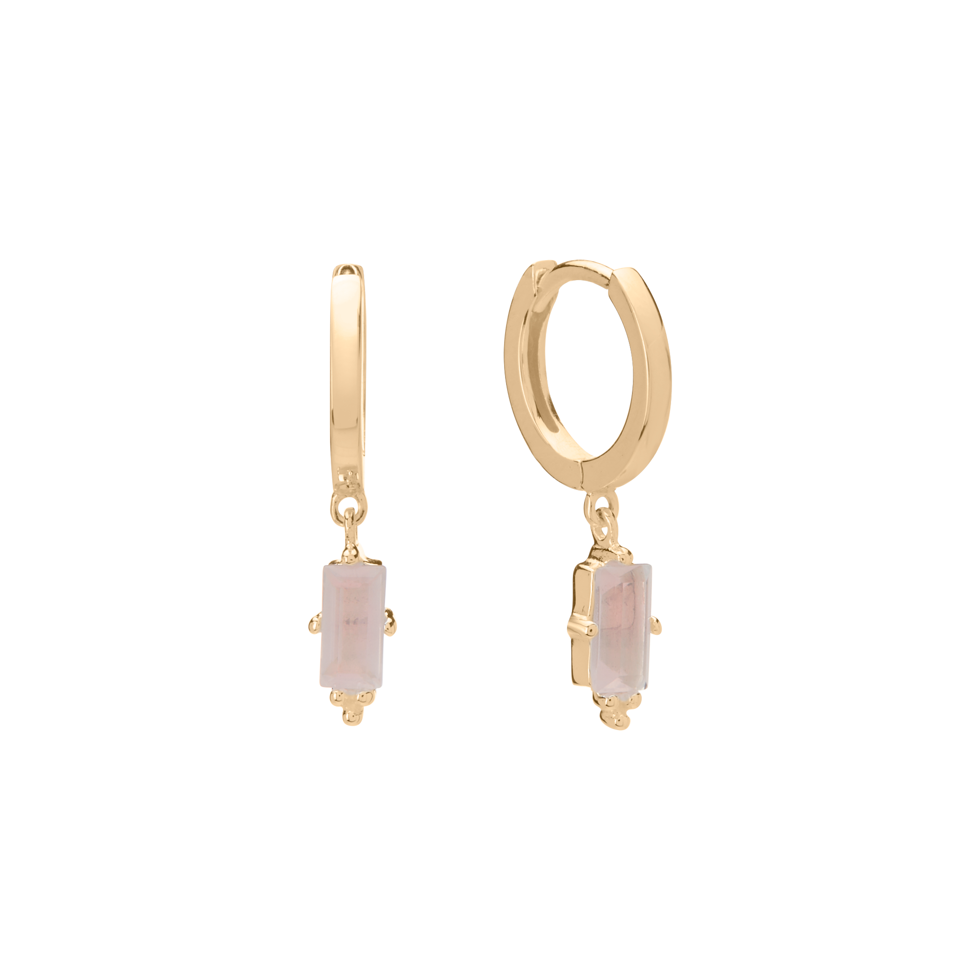 Gorgeous Yellow Gold, Octagonal shaped Huggies with 3 round cut Rose Quartz stones. Set in a soft matt finish, these Huggies are comfortable and light enough to wear every day. These earrings feature a Huggie style opening and closing mechanism.