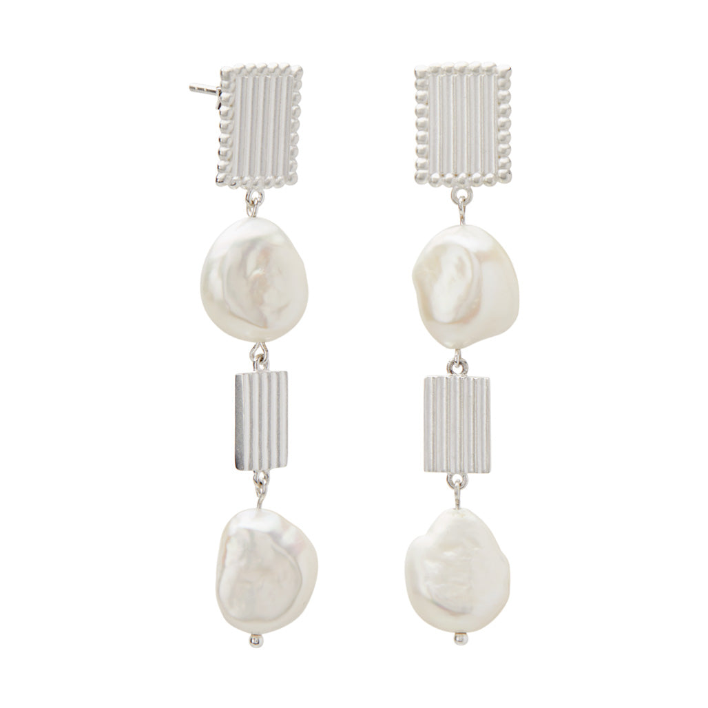 Aphrodite Goddess Long Hanging Pearl Earrings featuring Baroque Pearls with Hellenistic-inspired style.