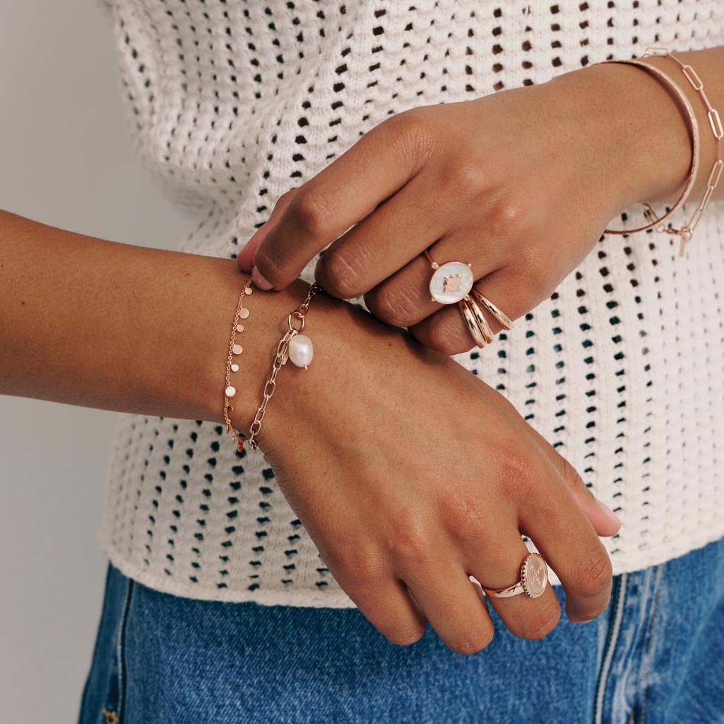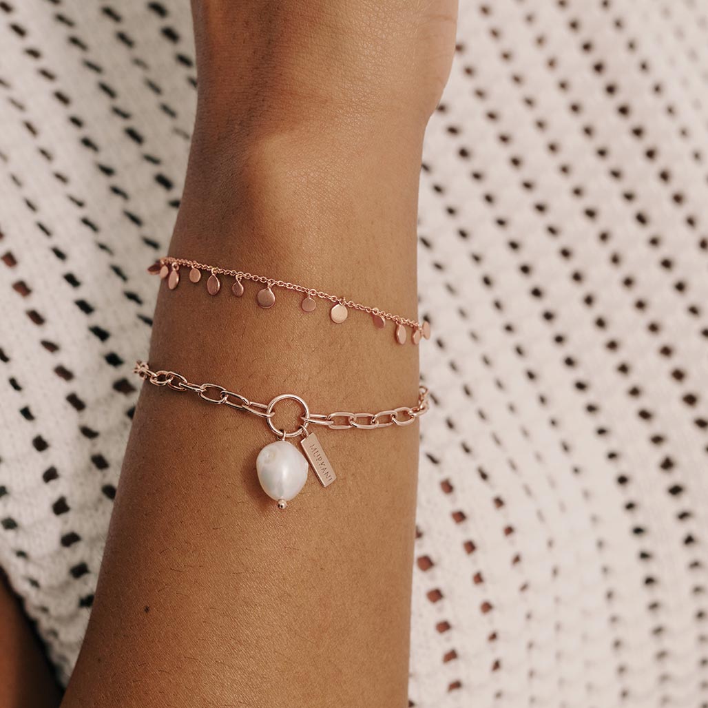 Level up your layering look with our handcrafted Coin Bracelet with small round disc pendants, complete with a matt finish. Our Rose Gold bracelet allows you to experiment and create your own unique style. Wear it by itself or mix and match it with other jewellery to complete the look.