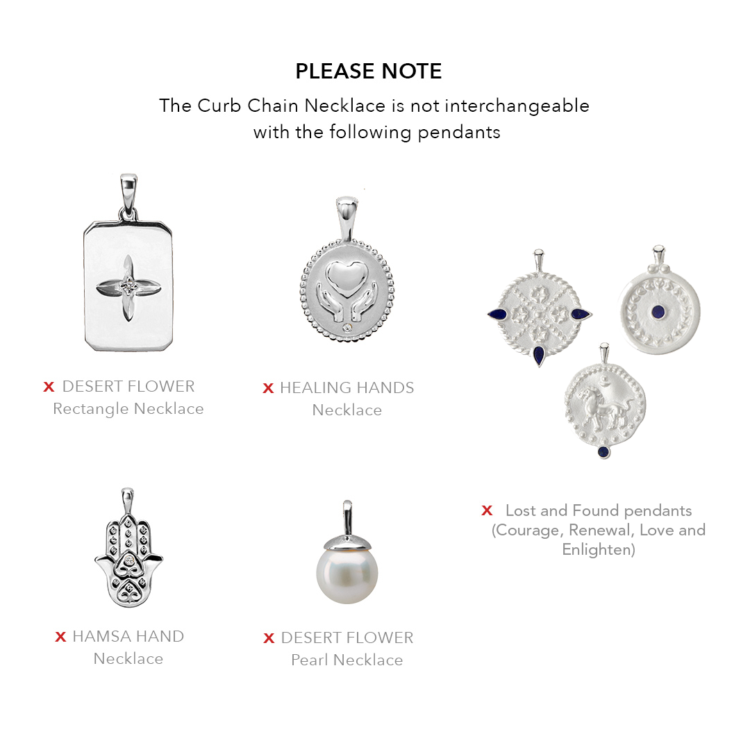 Please NOTE: These chains are not interchangeable with our Freedom Healing Hands Necklace; Freedom Hamsa Hand Necklace; Desert Flower Rectangle Necklace; Desert Flower Pearl Necklace; Lost and Found Pendants (Love and Enlighten, Renewal and Courage.