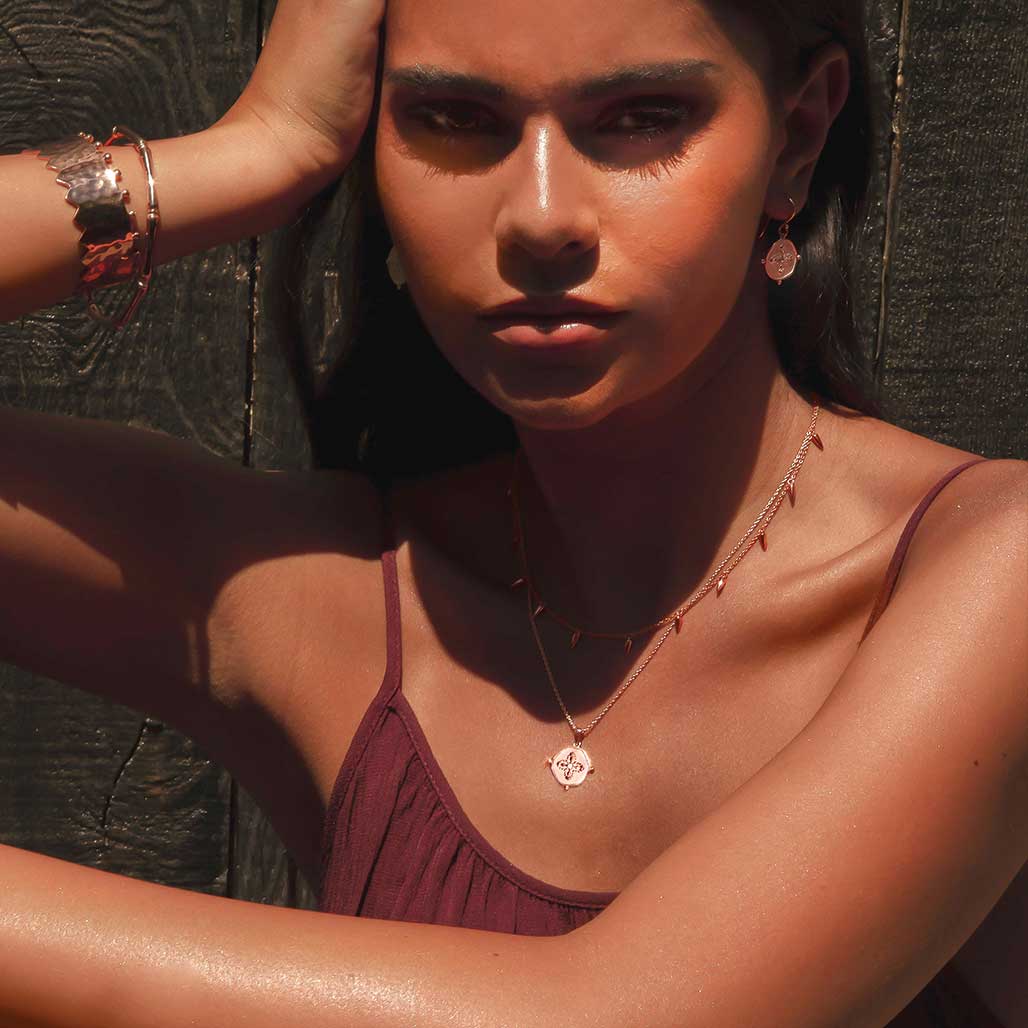 - Made of 2 micron Rose Gold plated onto brass